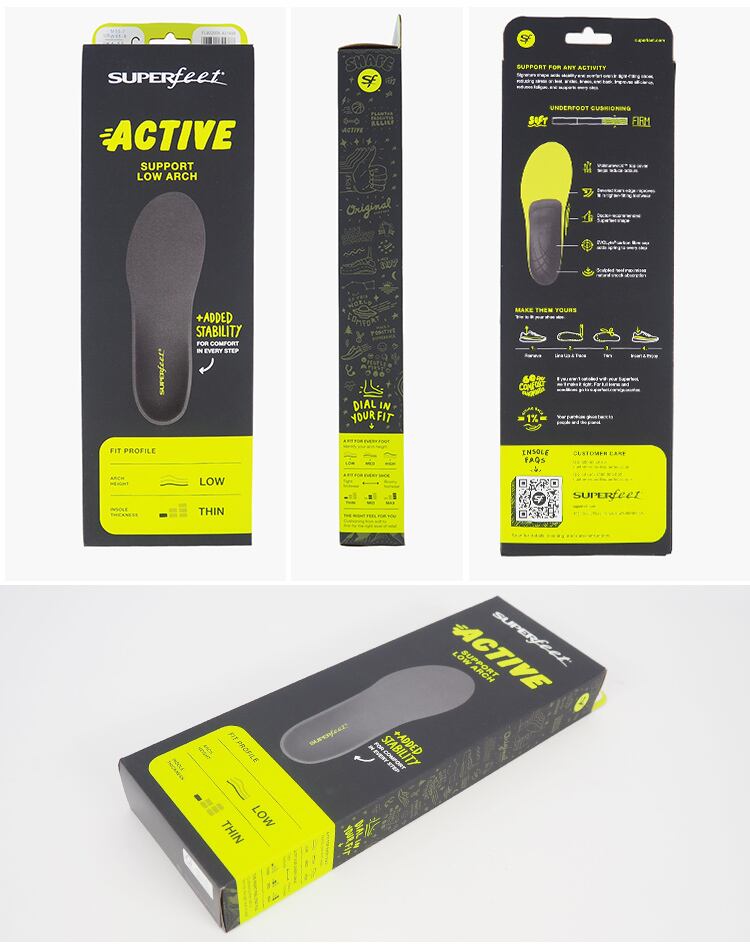 本商品「Active Support Low Arch(FL9320)」は、足のアーチが低め(ローアーチ)の方に向けてデザインされたインソールです。 炭素繊維(カーボンファイバー)配合のスタビライザーキャップと軽量素材を採用し、軽さと耐久性を両立させ、SUPERfeet の技術を活かした信頼性の高いハイパフォーマンスモデルです。